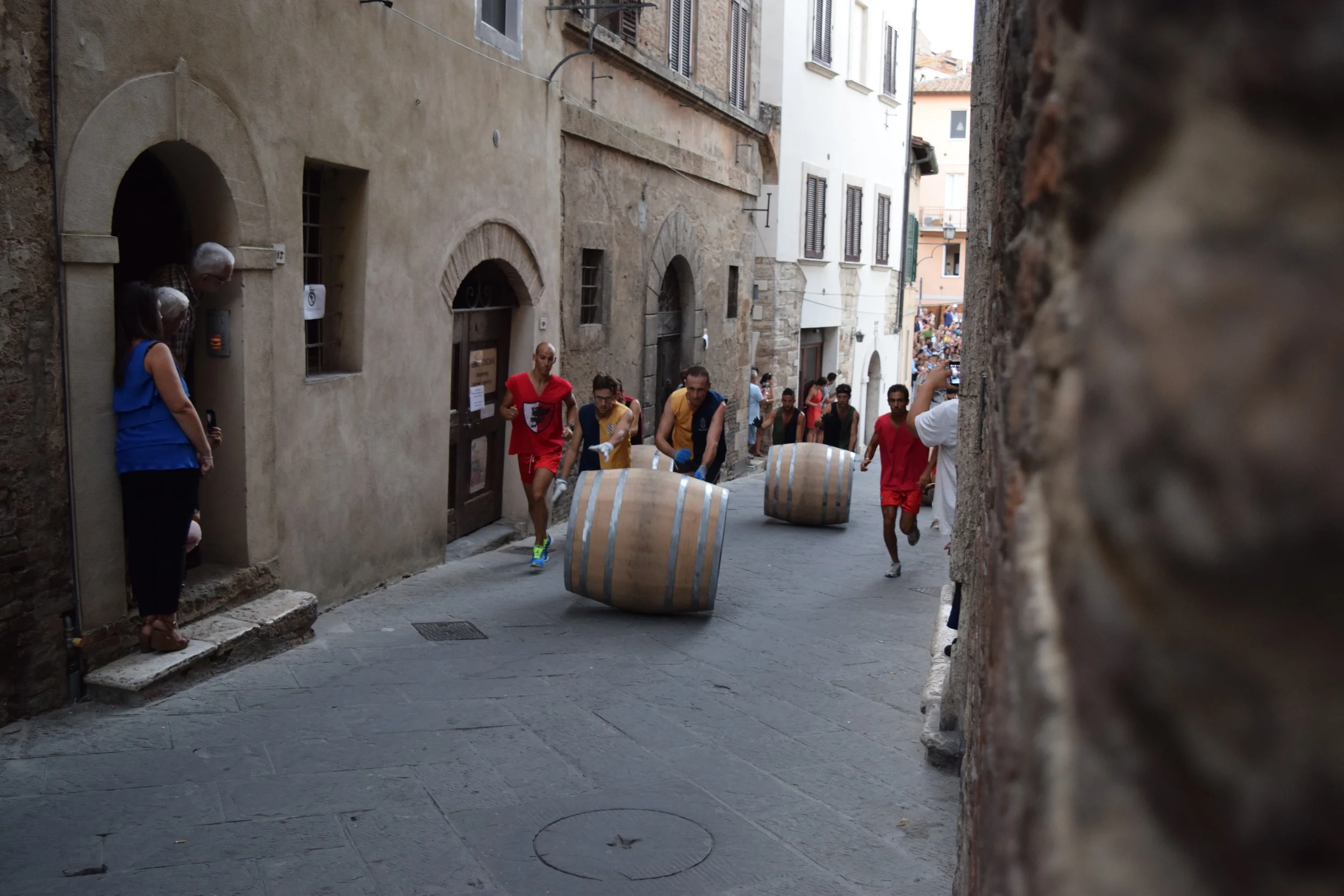 Prior to our arrival in Tuscany, I had read about the “Bravio delle Botti” which takes place every year on the last Sunday in August in Montepulciano. It’s a competition between the eight contrade (districts) of the town which seek to win the “Bravio”, the painted cloth banner depicting the city’s patron saint. Each contrade chooses 2 strong spingitori (aka pushers) to push a botti (wooden wine barrel) for about a kilometer uphill along the narrow streets of Montepulciano’s historical center. The origins of this competition go back to the 14th century. Prior to the race each contrade marches through the streets and you feel like you have been transported back to the Middle Ages. It was a really unique experience to be a part of. I’m not sure if we saw any other non-Italians. It was truly a community event and I’ll always remember being a part of it. You can see a short video I took of the race here.